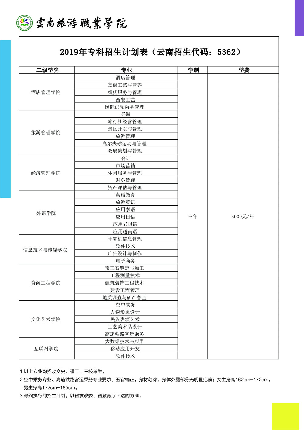 云南旅游職業(yè)學院2019年招生簡章