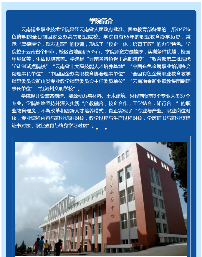 來(lái)源:云南錫業(yè)職業(yè)技術(shù)學(xué)院