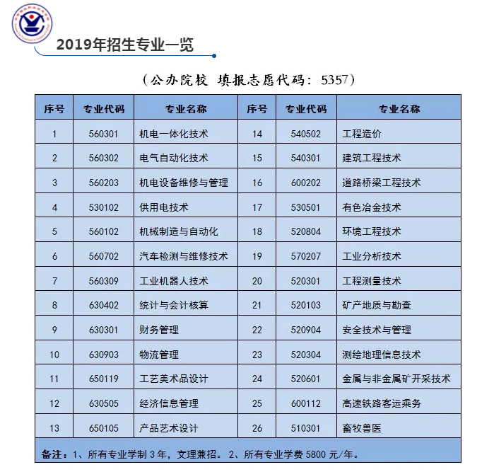 云南錫業(yè)職業(yè)技術(shù)學(xué)院2019年招生章程