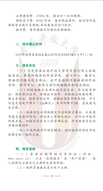 2019秋季云南開放大學(xué)招生簡章