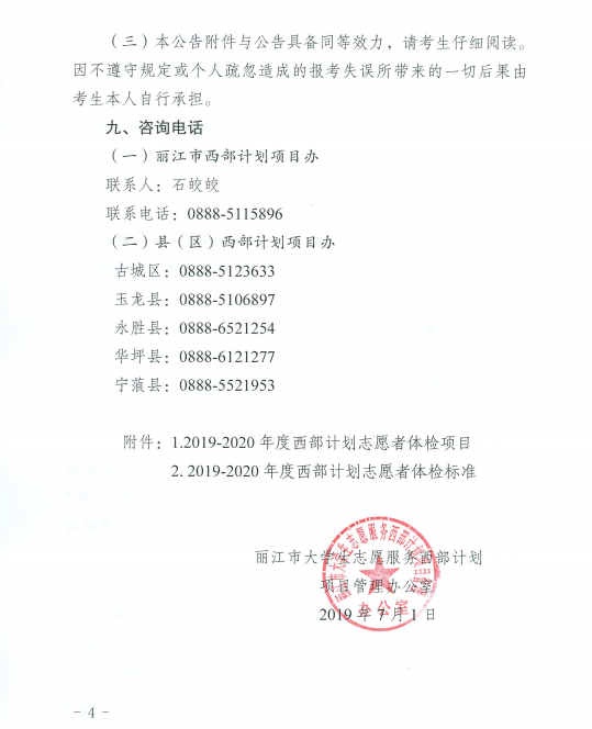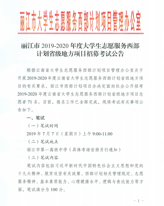 麗江市2019—2020年大學(xué)生西部志愿者招募考試公告