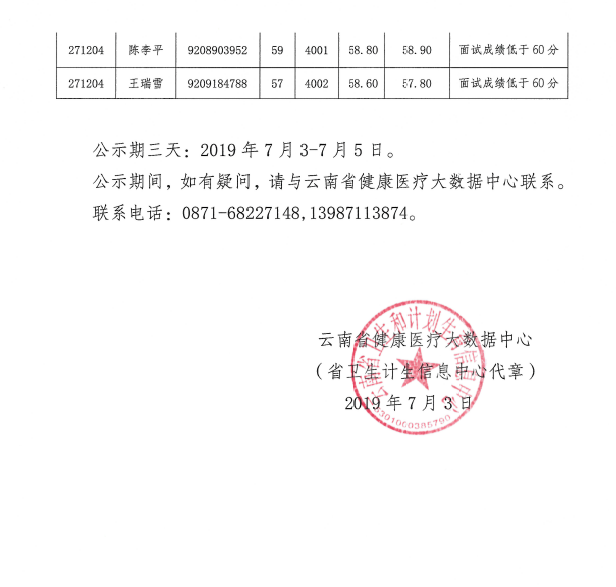 公示期間,如有疑問,請與云南省健康醫(yī)療大數(shù)據(jù)中心聯(lián)系。