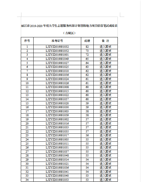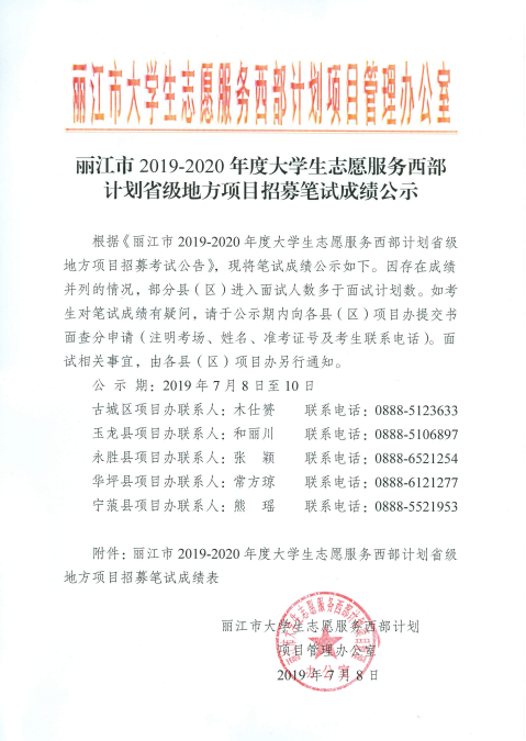 2019-2020年度大學生志愿服務西部計劃省級地方項目招募筆試成績公示