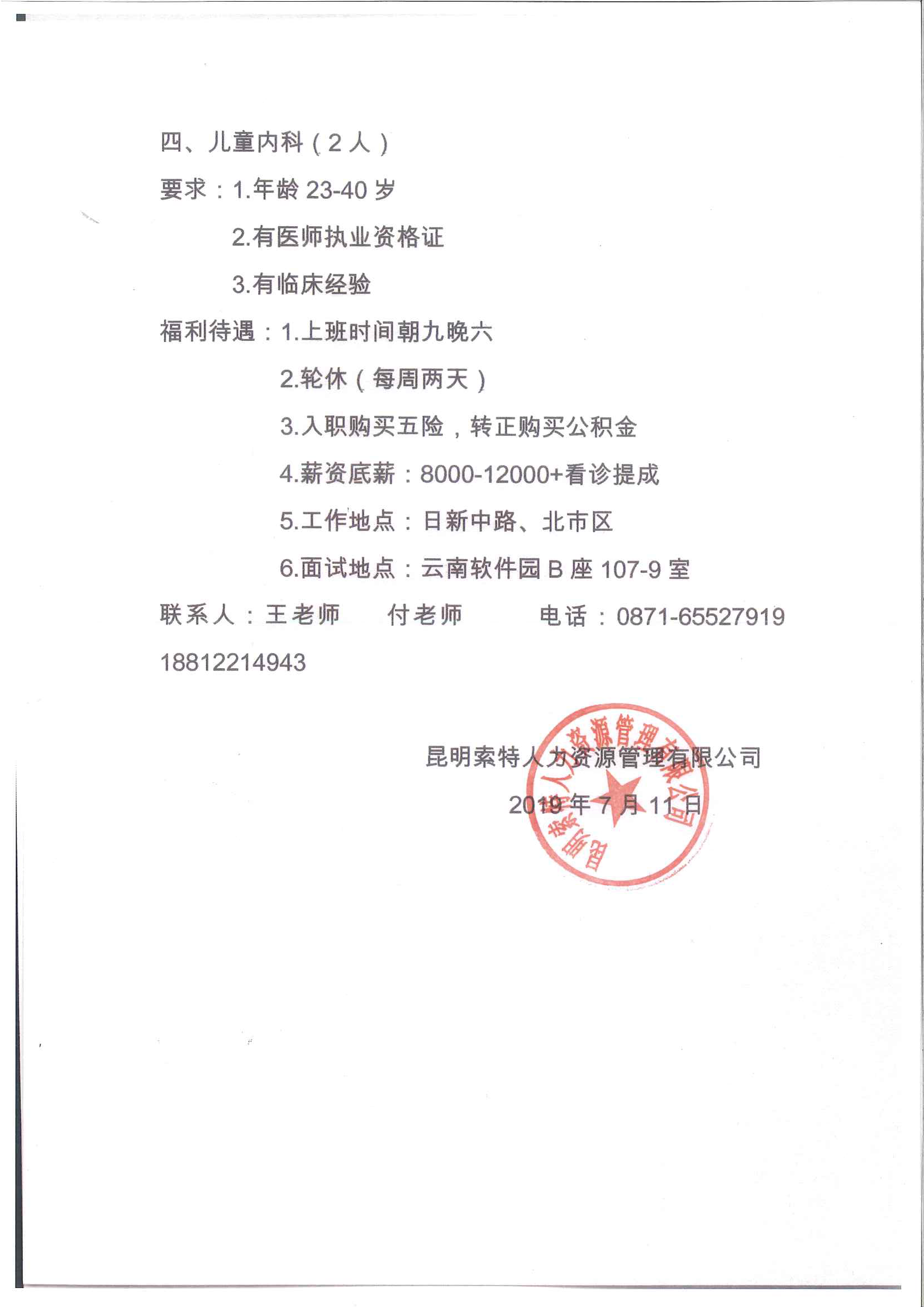 2019年昆明知貝醫(yī)療服務(wù)有限公司金廣路門診部招聘