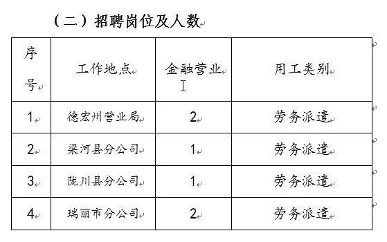 現(xiàn)眾托人力德宏分公司招聘并安排至:中國(guó)郵政集團(tuán)公司德宏州營(yíng)業(yè)局、云南省梁河縣分公司、云南省隴川縣分公司、云南省瑞麗市分公司,面向社會(huì)公開招聘,誠(chéng)邀有志之士加入,相關(guān)事項(xiàng)如下: