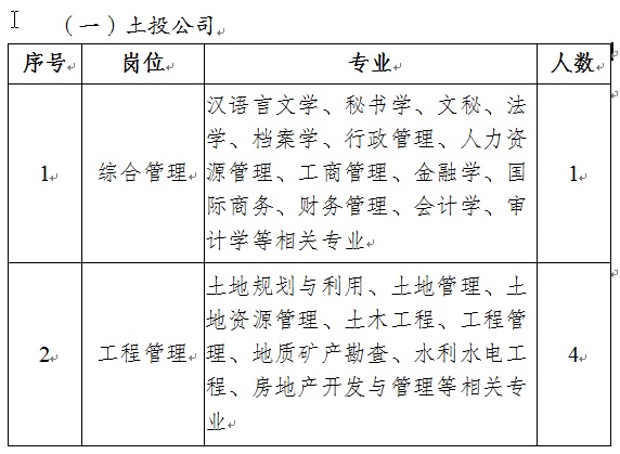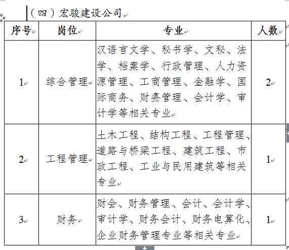 本次計劃招聘16人。其中,土投公司招聘5人;麗景酒店公司招聘5人;醫(yī)療供應(yīng)鏈公司招聘2人;宏駿建設(shè)公司招聘4人,具體崗位如下: