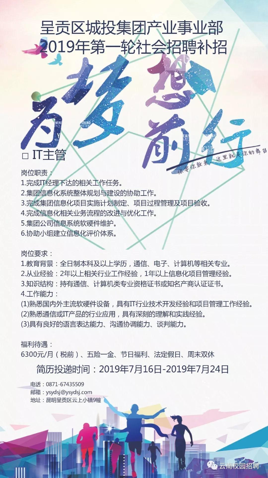 昆明市呈貢區(qū)城投集團產(chǎn)業(yè)事業(yè)部2019年社會招聘公告