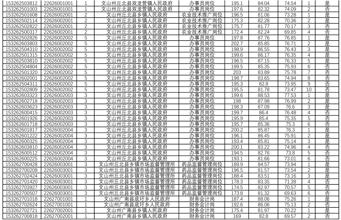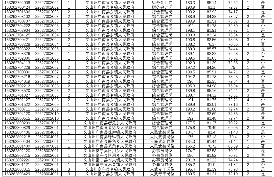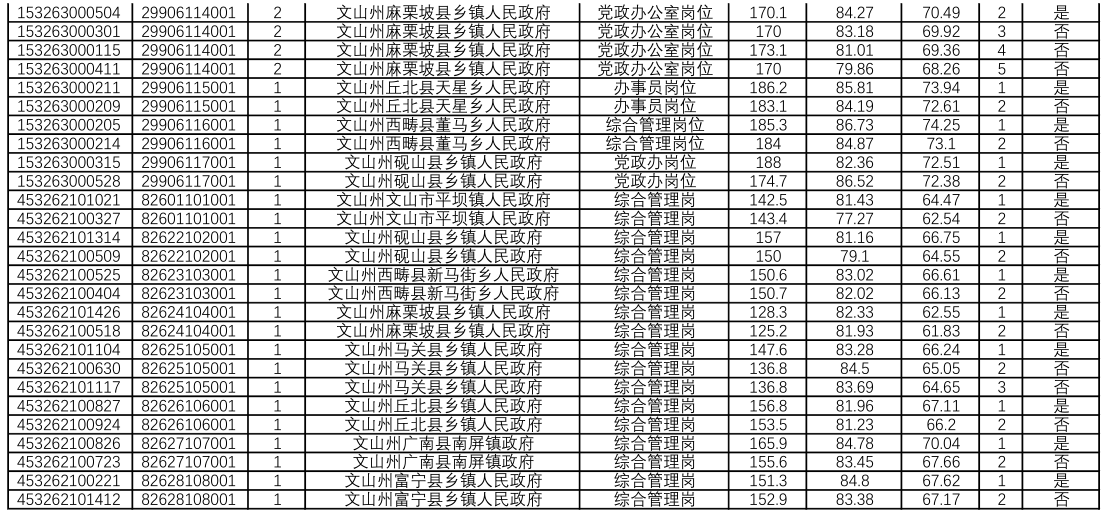 文山州2019年公務員面試及綜合成績公示