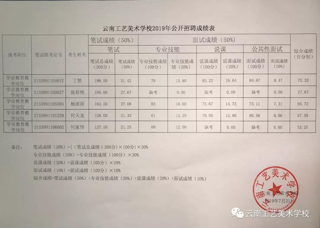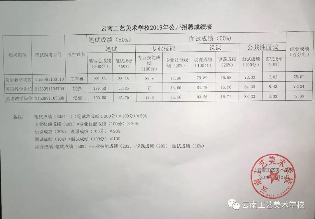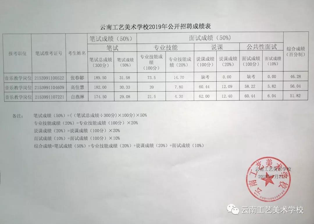 云南工藝美術(shù)學(xué)校2019年公開招聘面試成績公告