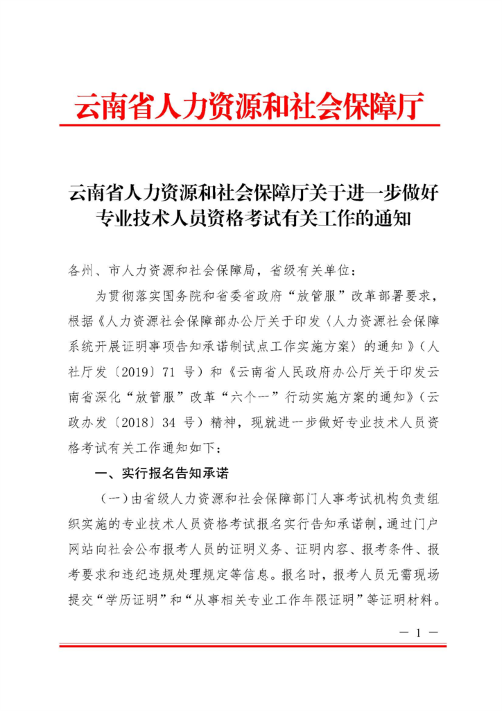 云南省人力資源和社會保障廳關(guān)于進(jìn)一步做好專業(yè)技術(shù)人員資格考試有關(guān)工作的通知