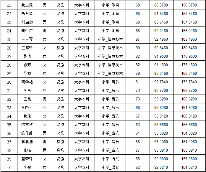昭通市威信縣2019年中央特崗教師考試面試成績公示