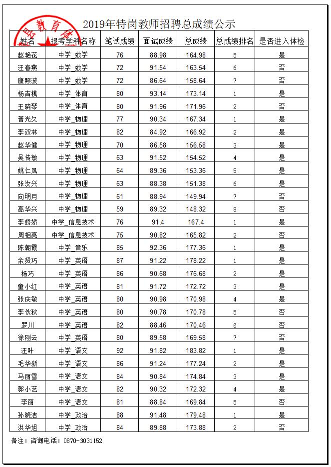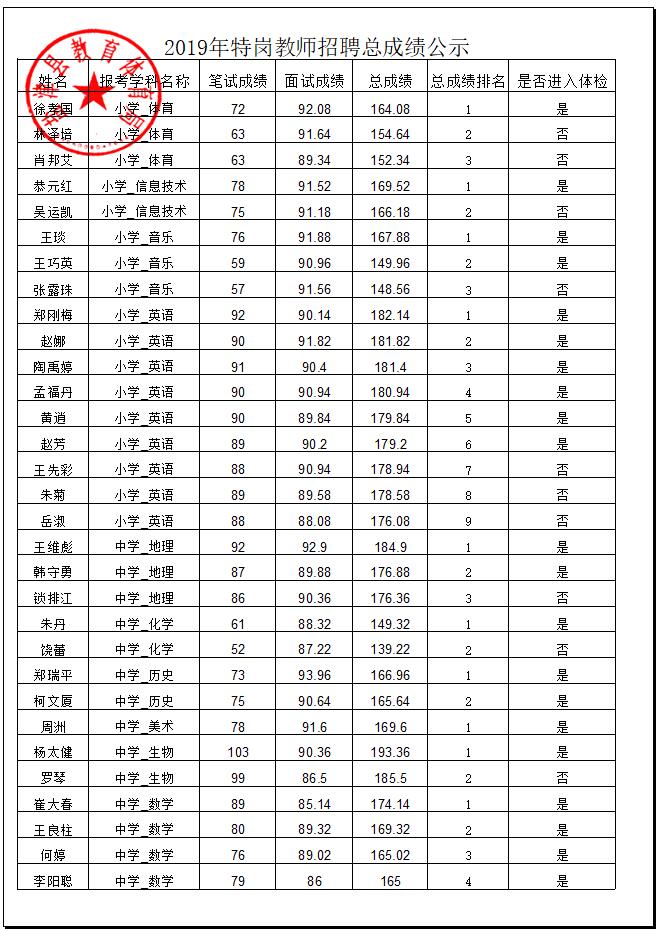 鹽津縣2019年特崗教師招聘總成績公示