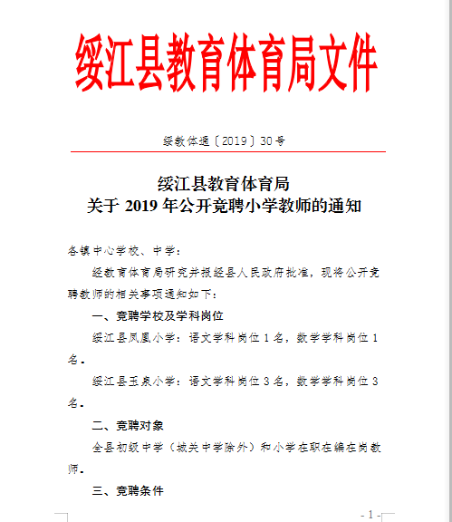 綏江縣教育體育局2019年競(jìng)聘小學(xué)教師通知