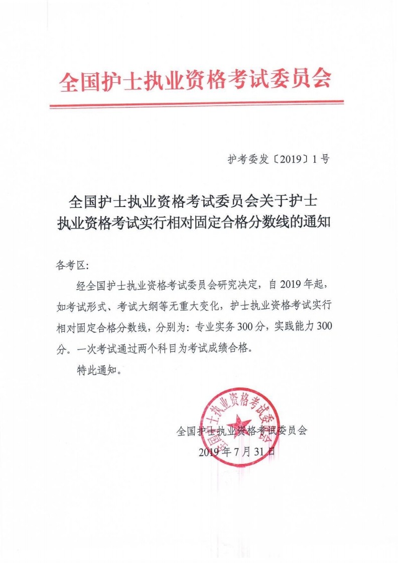 2019年護士執(zhí)業(yè)資格考試實行相對固定合格分數(shù)線的通知