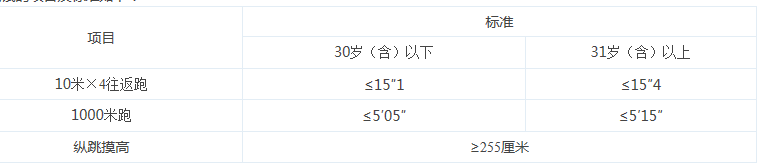 體能測(cè)試的項(xiàng)目及標(biāo)準(zhǔn)如下: