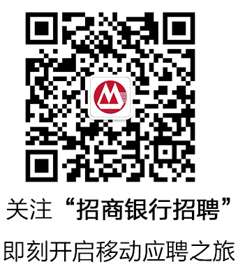 官方微信:掃描下方二維碼,關(guān)注“招商銀行招聘”微信公眾平臺,獲取最新的校園招聘信息,點擊“我要應聘-校園招聘-我要應聘”,選擇我行并投遞簡歷!