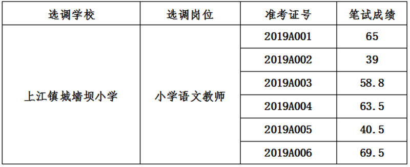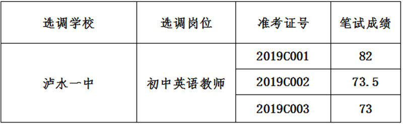 瀘水市2019年公開選調(diào)教師筆試成績公示