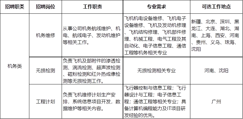 南方航空2020屆機(jī)務(wù)崗位秋季校園招聘