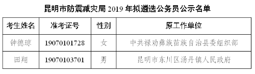 昆明市防震減災(zāi)局2019年擬遴選公務(wù)員人選公示