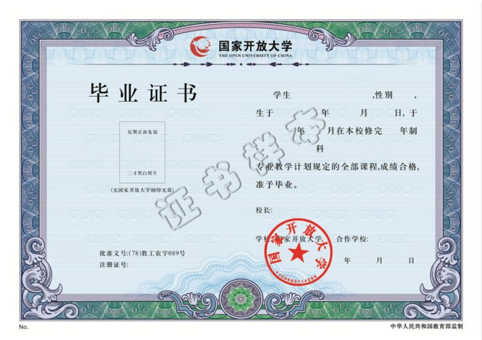 國(guó)家開(kāi)放大學(xué)畢業(yè)證書(shū)(樣本)