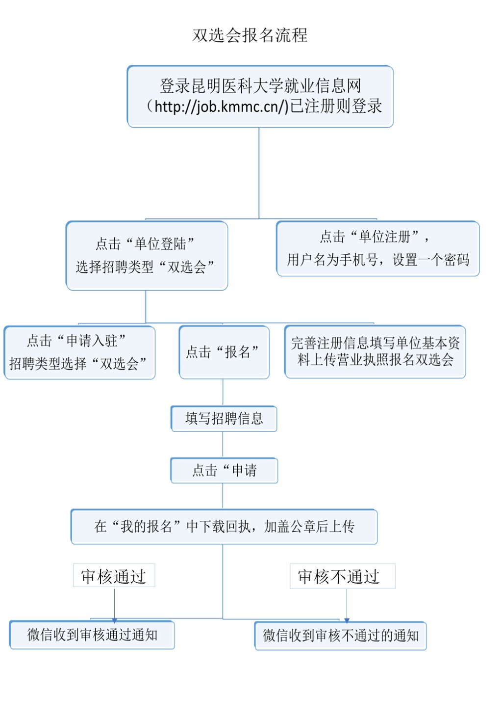 (三)請各參會單位于2019年11月1日前登錄/注冊http://job.kmmc.cn(昆明醫(yī)科大學(xué)就業(yè)信息網(wǎng))進(jìn)行報名,報名流程詳見附件《雙選會報名流程》。