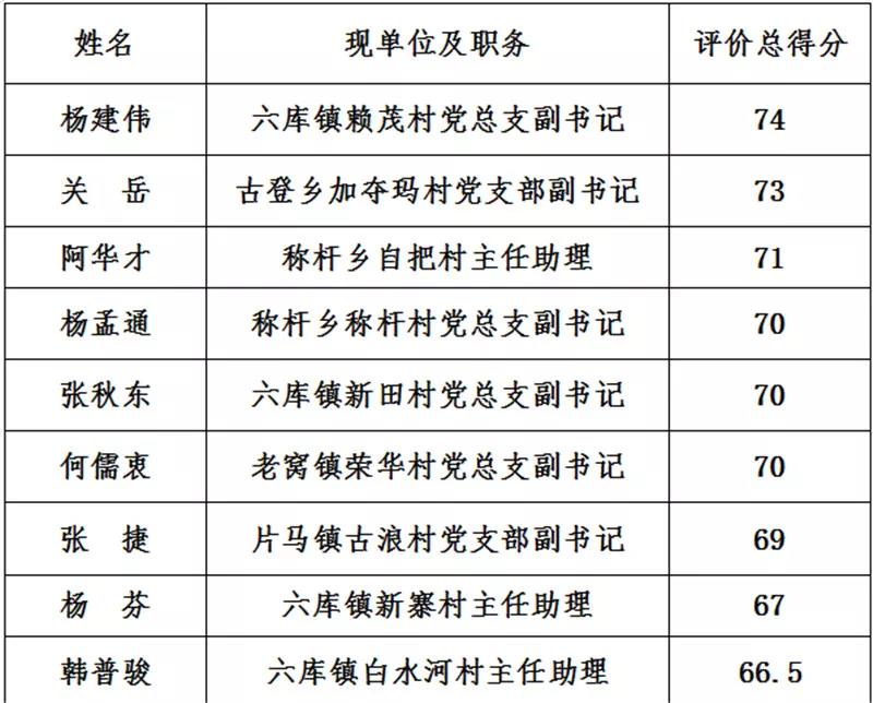 定向招聘大學(xué)生村官考核評(píng)分結(jié)果的公示