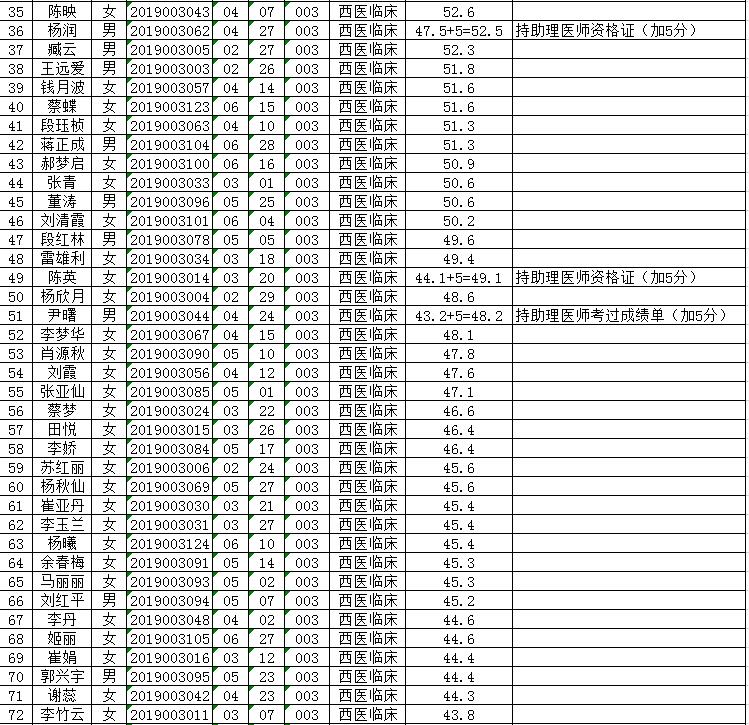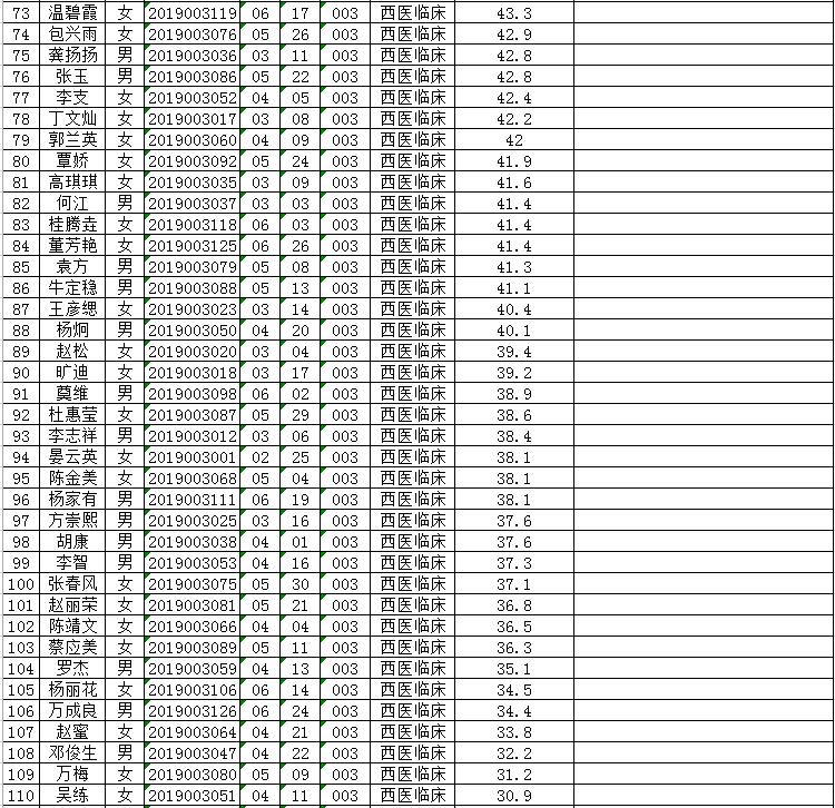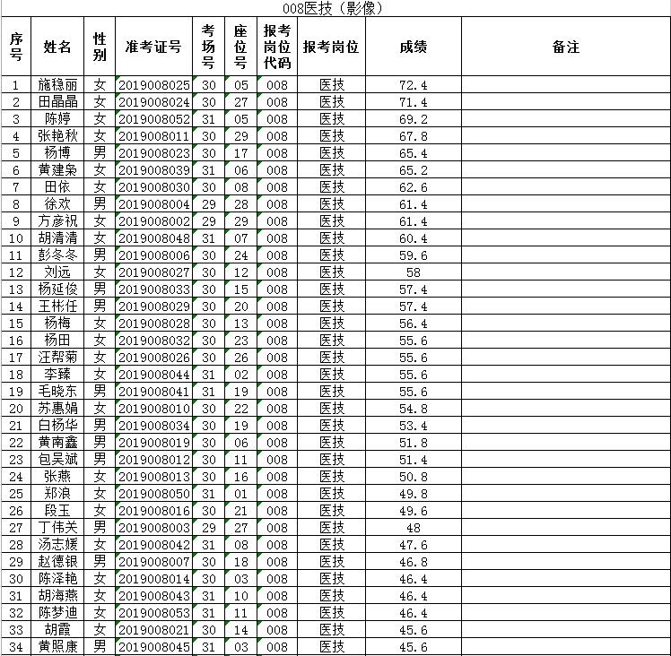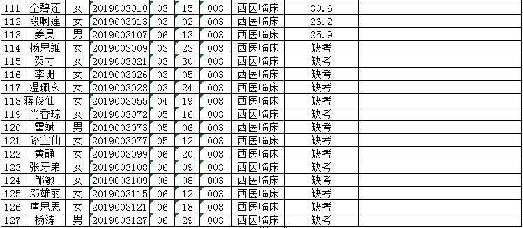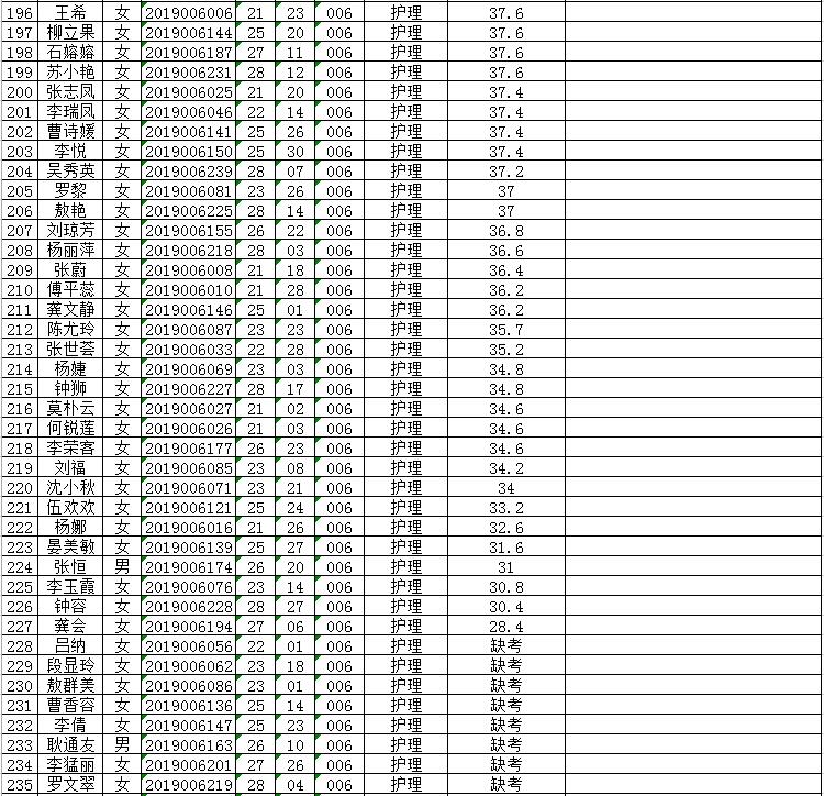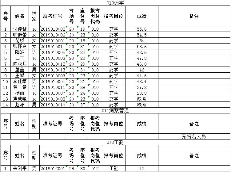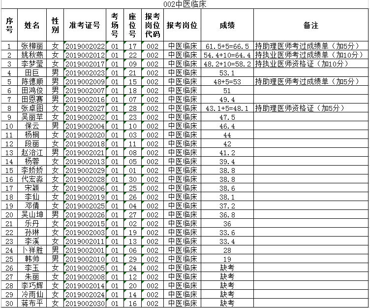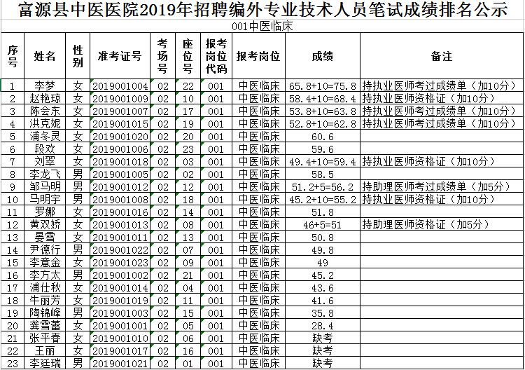 曲靖市富源縣中醫(yī)醫(yī)院2019年招聘編外人員筆試成績排名公示