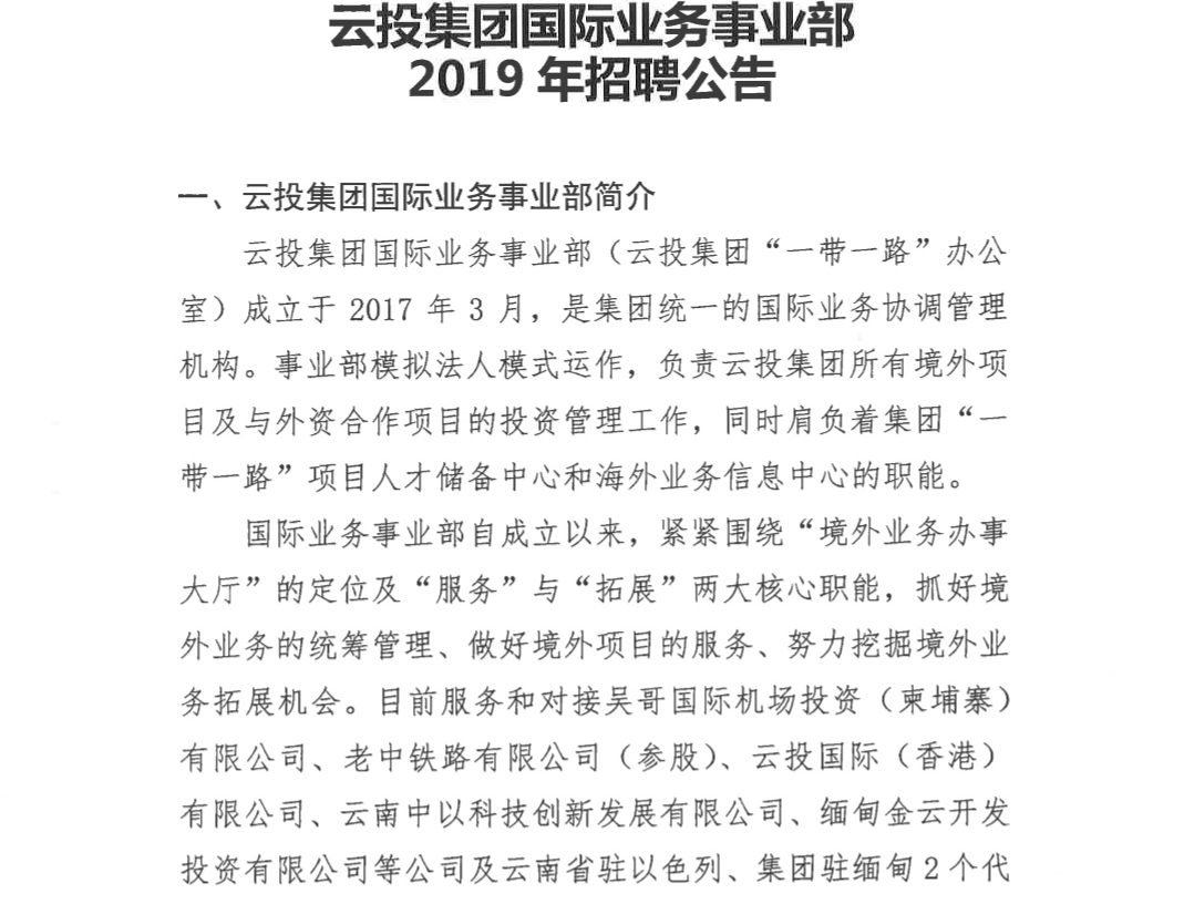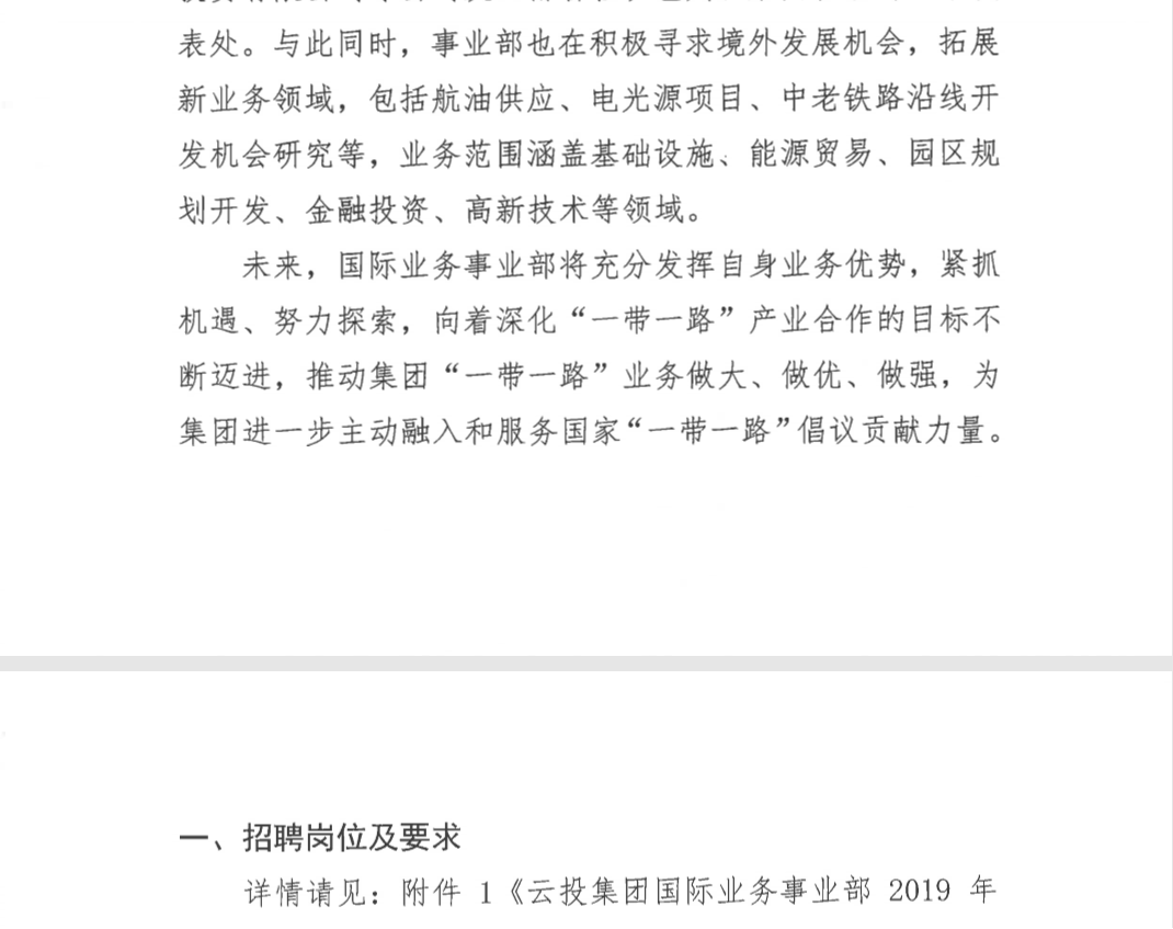 云投集團(tuán)國(guó)際業(yè)務(wù)事業(yè)部2019年招聘公告