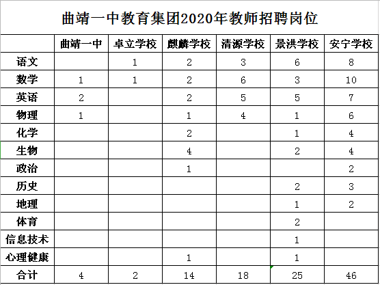 云南省曲靖一中教育集團(tuán)第五次公開招聘2020年教師的公告