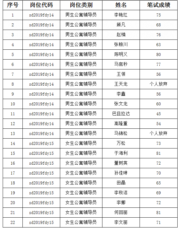 云南師范大學(xué)2019年公開(kāi)招聘非事業(yè)編制專職輔導(dǎo)員筆試成績(jī)公布
