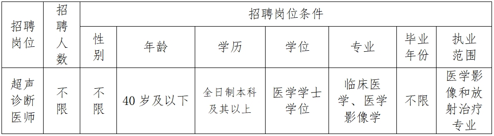 為使醫(yī)院人力資源配置適應(yīng)醫(yī)院業(yè)務(wù)發(fā)展需求,保障醫(yī)療安全,提高服務(wù)質(zhì)量,滿足廣大人民群眾日益增長(zhǎng)的醫(yī)療衛(wèi)生需求,我院決定招聘超聲醫(yī)學(xué)科編制外工作人員,具體事項(xiàng)如下:
