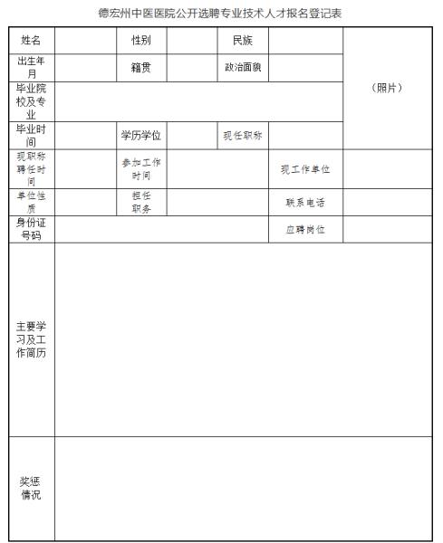 [附件: 德宏州中醫(yī)醫(yī)院公開選聘專業(yè)技術(shù)人才報(bào)名登記表]