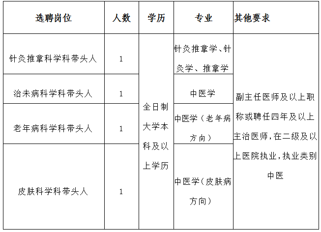 本次選聘工作本著公開、公平、公正、競爭的原則,按照德才兼?zhèn)洹I(yè)技術(shù)過硬、政治合格、醫(yī)德醫(yī)風(fēng)良好的標(biāo)準(zhǔn),擇優(yōu)選人。