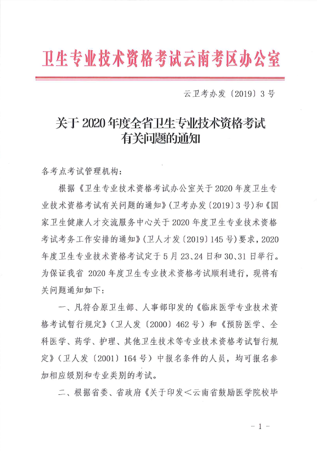 關(guān)于2020年度我省衛(wèi)生專業(yè)技術(shù)資格考試有關(guān)問題的通知