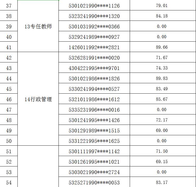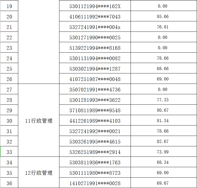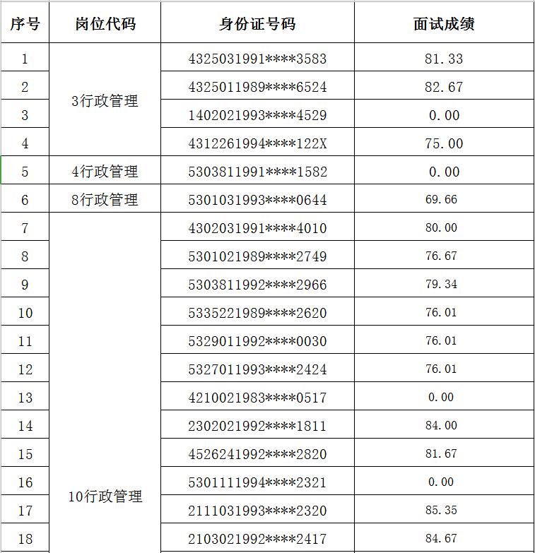云南高創(chuàng)人才服務有限公司為云南藝術學院招聘勞務派遣制員工2019年12月20日面試成績結果如下: