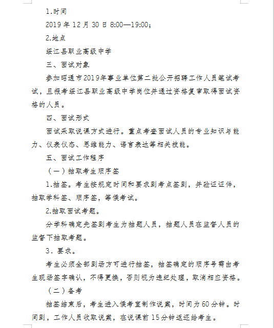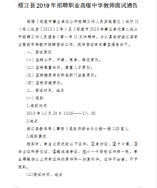 昭通市綏江縣2019年招聘職業(yè)高級(jí)中學(xué)教師面試通告