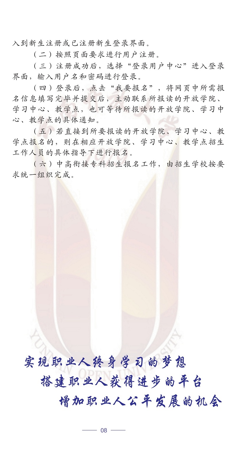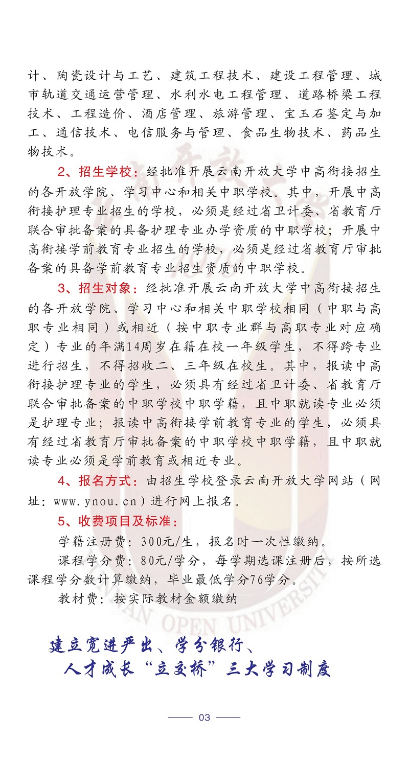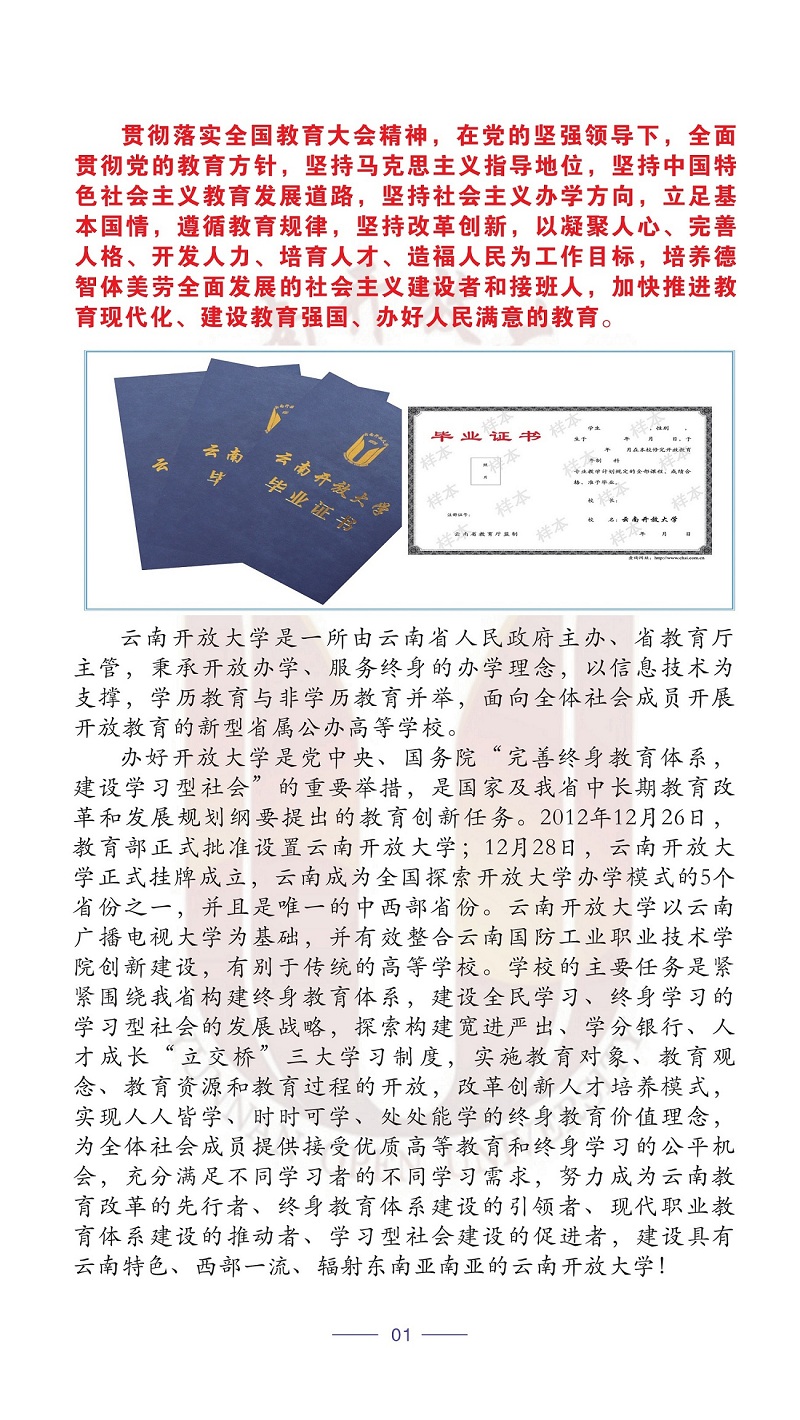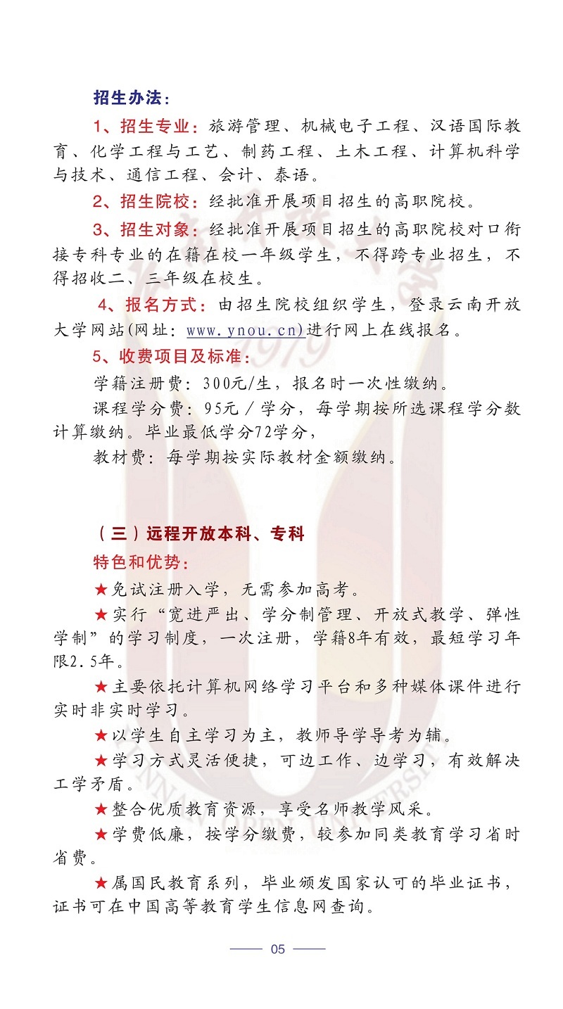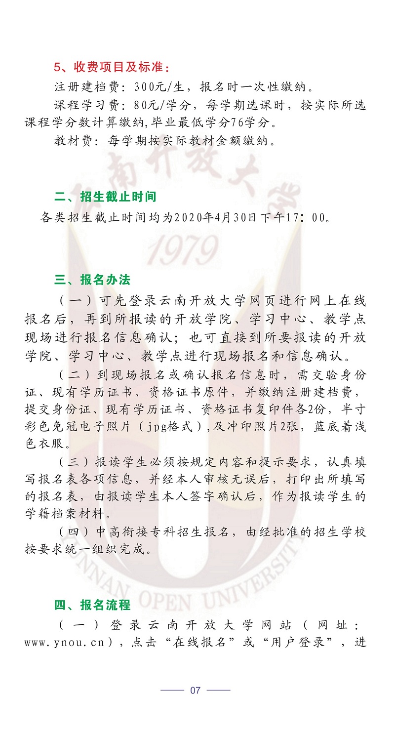 2020年春季云南開放大學招生簡章