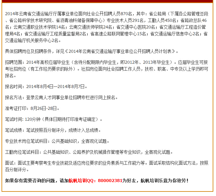 2014年云南省交通運輸廳事業(yè)單位招聘考試咨詢