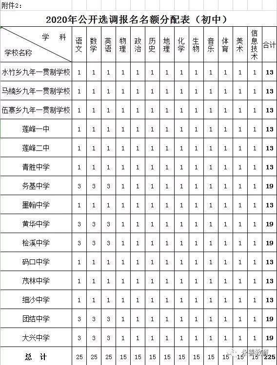 附件2:《永善縣2020年公開(kāi)選調(diào)報(bào)名名額分配表(初中)》