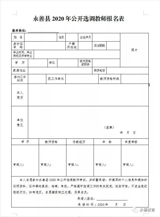 附件4:《永善縣2020年公開(kāi)選調(diào)教師報(bào)名表》