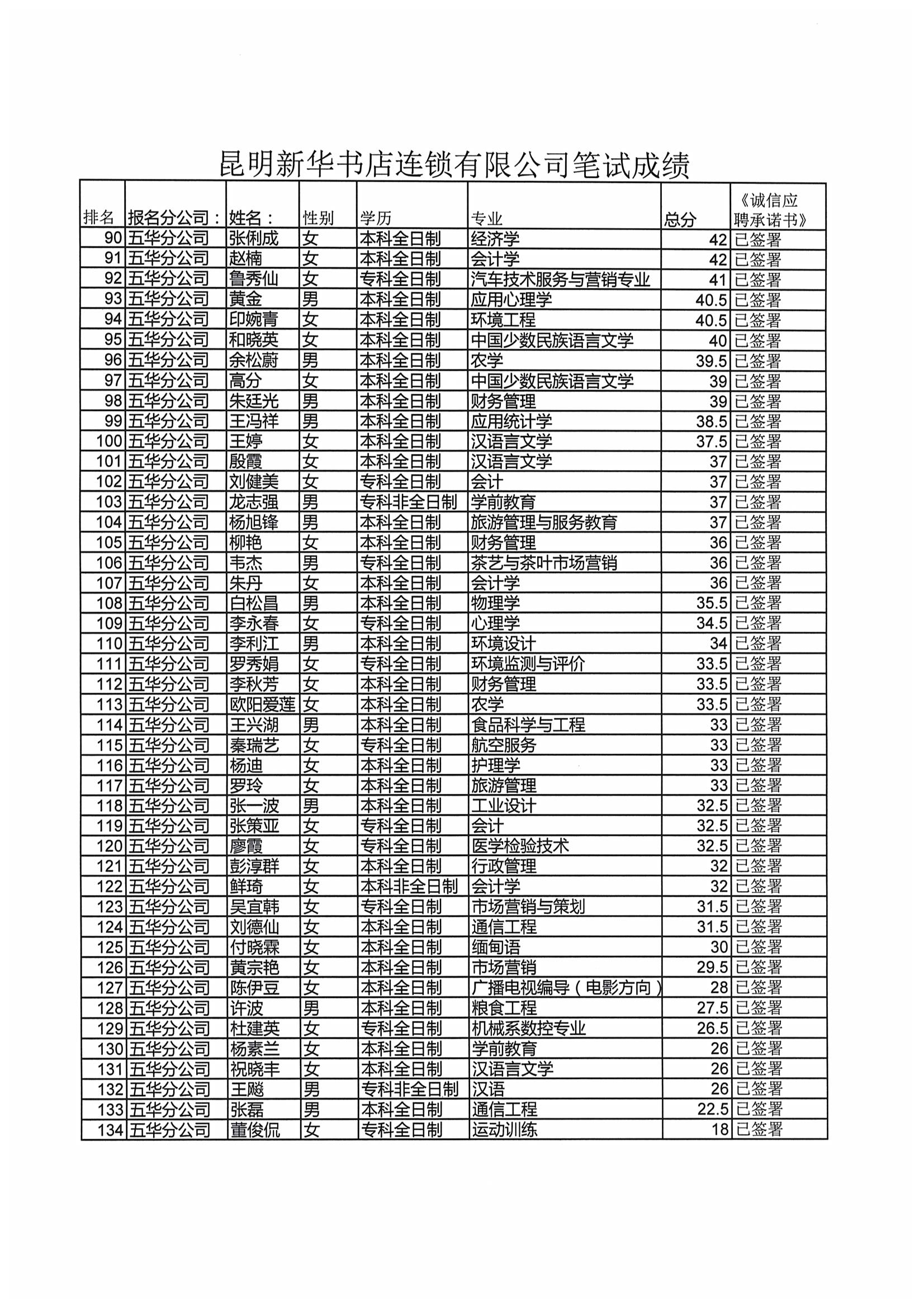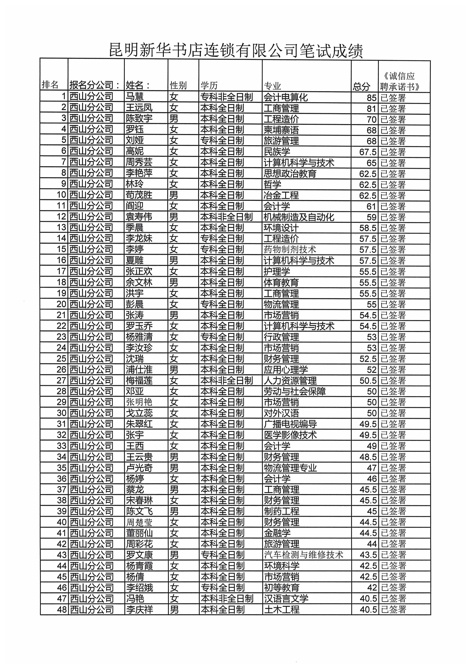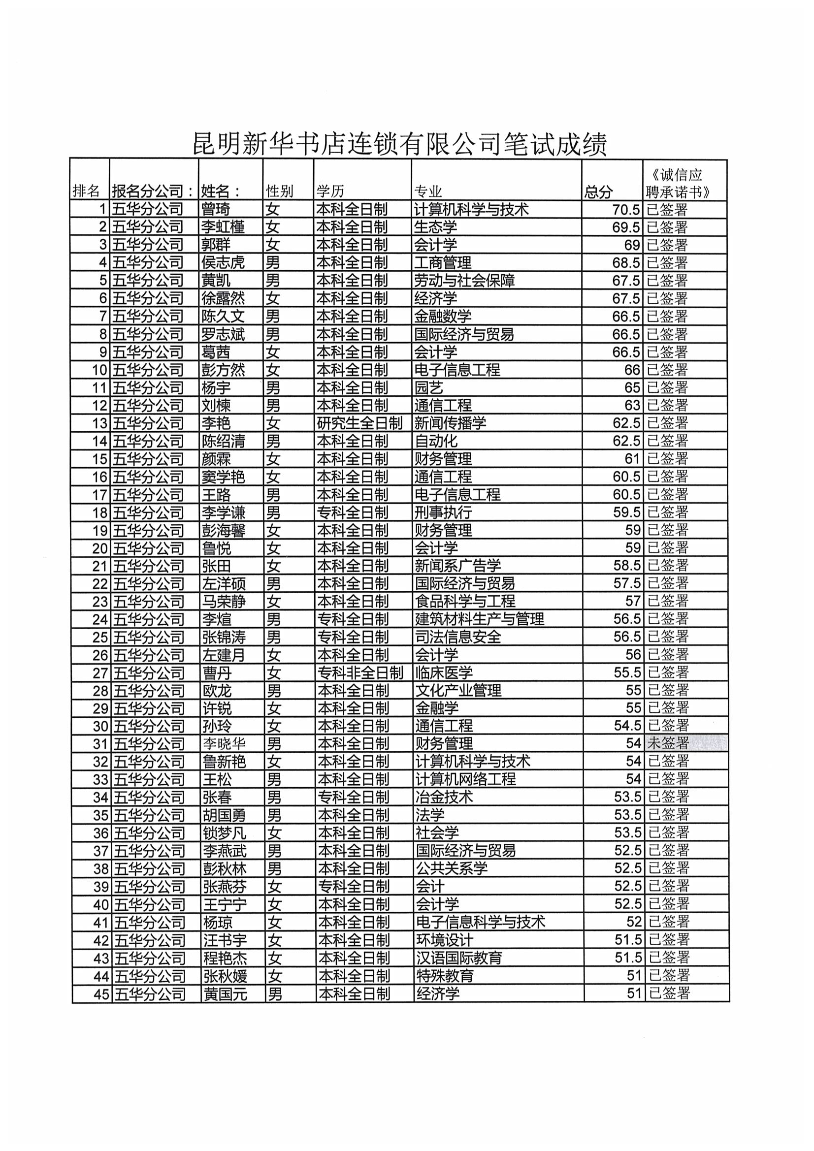 昆明新華書(shū)店連鎖有限公司公開(kāi)招聘筆試成績(jī)公示