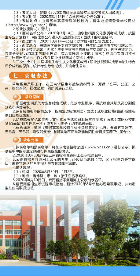 2020年曲靖醫(yī)學(xué)高等專(zhuān)科學(xué)校單獨(dú)考試招生簡(jiǎn)章
