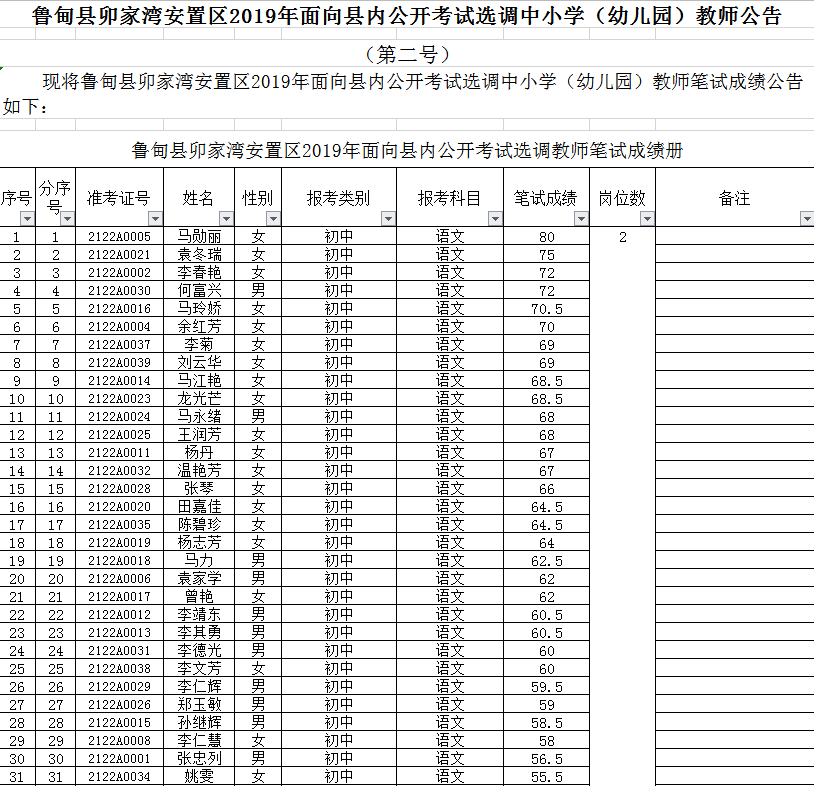 完整版請(qǐng)點(diǎn)擊下載查看:魯?shù)榭h卯家灣安置區(qū)面向縣選調(diào)教師公告(第二號(hào)).xlsx