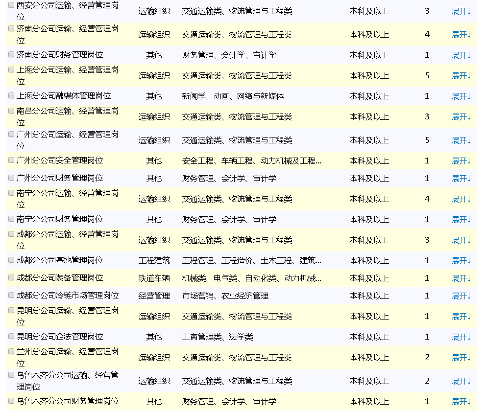 本次計(jì)劃招聘畢業(yè)生110名,具體崗位及專業(yè)、學(xué)歷要求詳見(jiàn)《中鐵特貨公司2020年招聘畢業(yè)生需求信息表》(附件)。