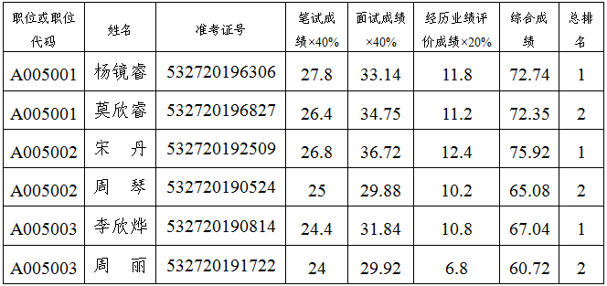 注:若考生對(duì)本人成績有異議,可于2020年1月15日前向普洱市發(fā)展和改革委員會(huì)提出查分申請。由普洱市發(fā)展和改革委員會(huì)委托受邀對(duì)本次遴選工作進(jìn)行監(jiān)督的人大代表、政協(xié)委員進(jìn)行查分,并將結(jié)果告知。