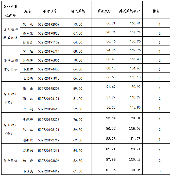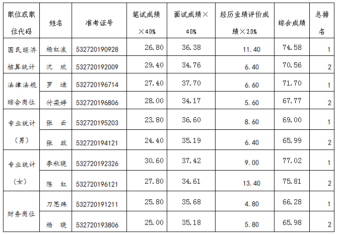 注:若考生對(duì)本人成績(jī)有異議,可于2020年1月23日前向普洱市統(tǒng)計(jì)局提出查分申請(qǐng)。由普洱市統(tǒng)計(jì)局委托受邀對(duì)本次遴選工作進(jìn)行監(jiān)督的人大代表、政協(xié)委員進(jìn)行查分,并將結(jié)果告知。
