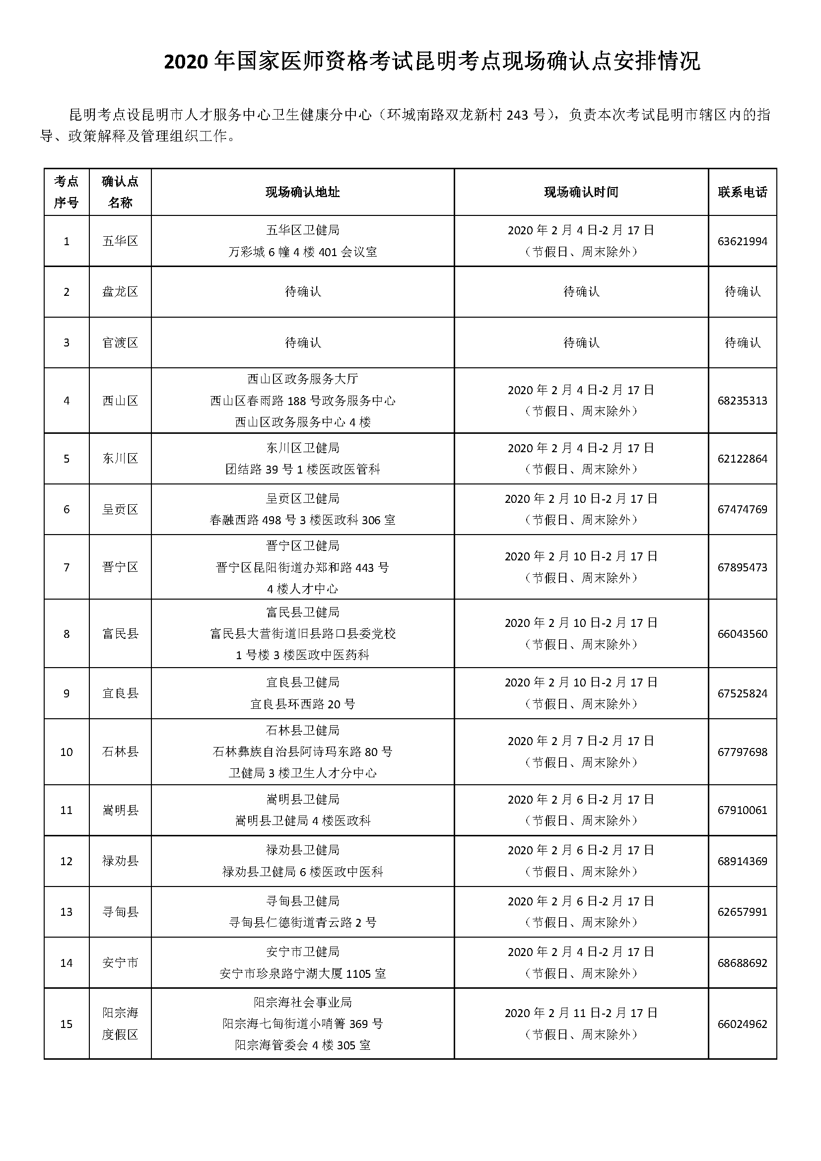 2020年度醫(yī)師資格考試?yán)ッ骺键c現(xiàn)場確認(rèn)點安排通告