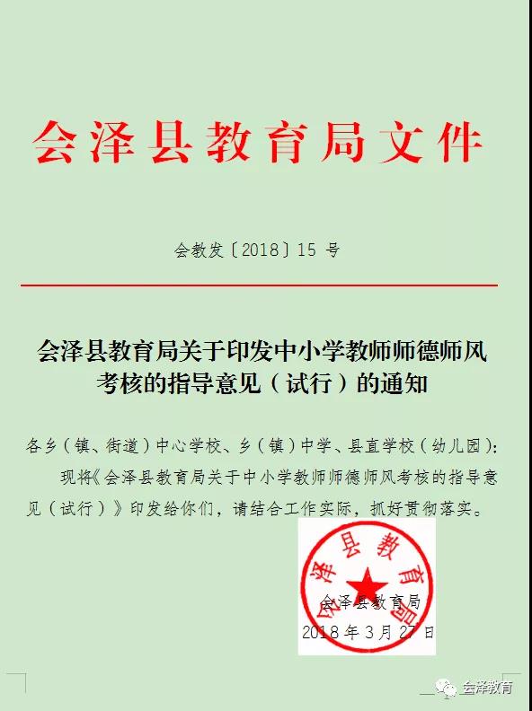 附件:1.會澤縣教育局關(guān)于印發(fā)中小學(xué)教師師德師風(fēng)考核的指導(dǎo)意見(試行)的通知