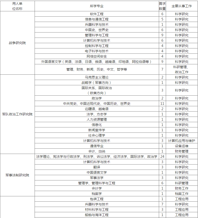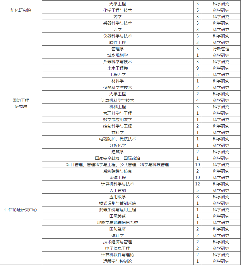 軍事科學(xué)院2020年招聘初步計(jì)劃