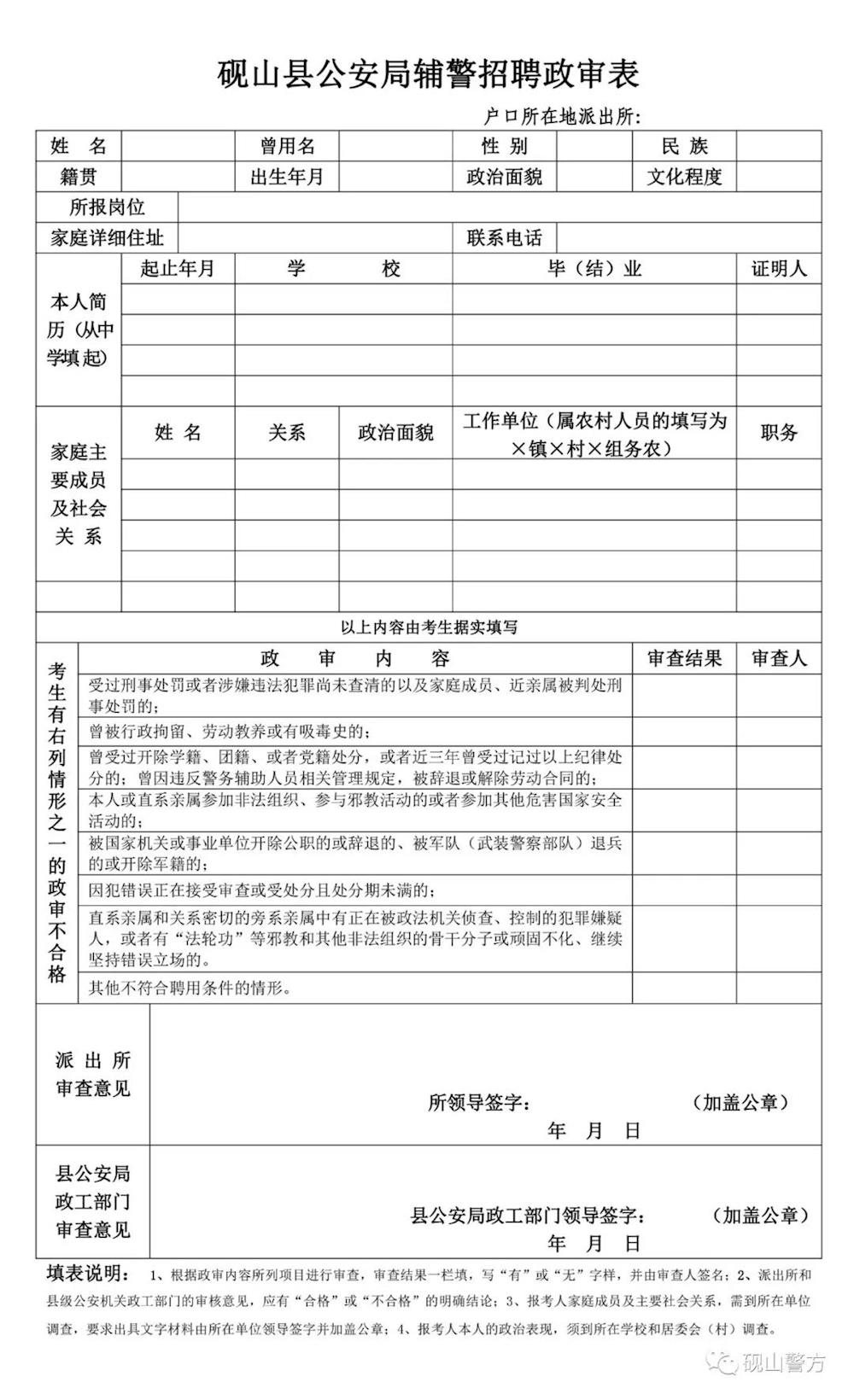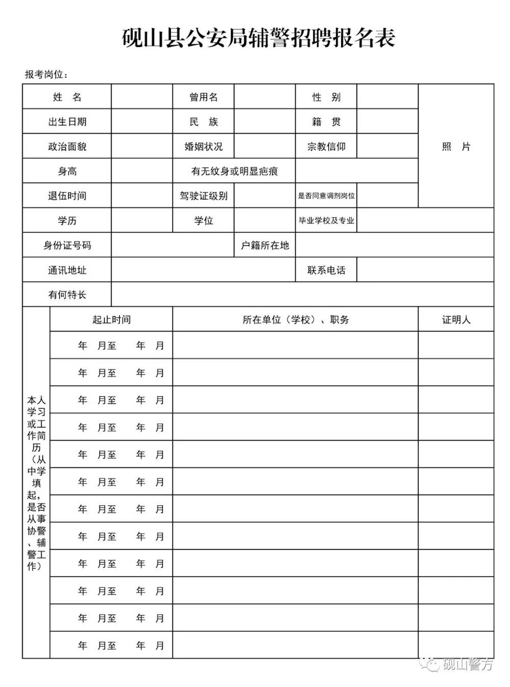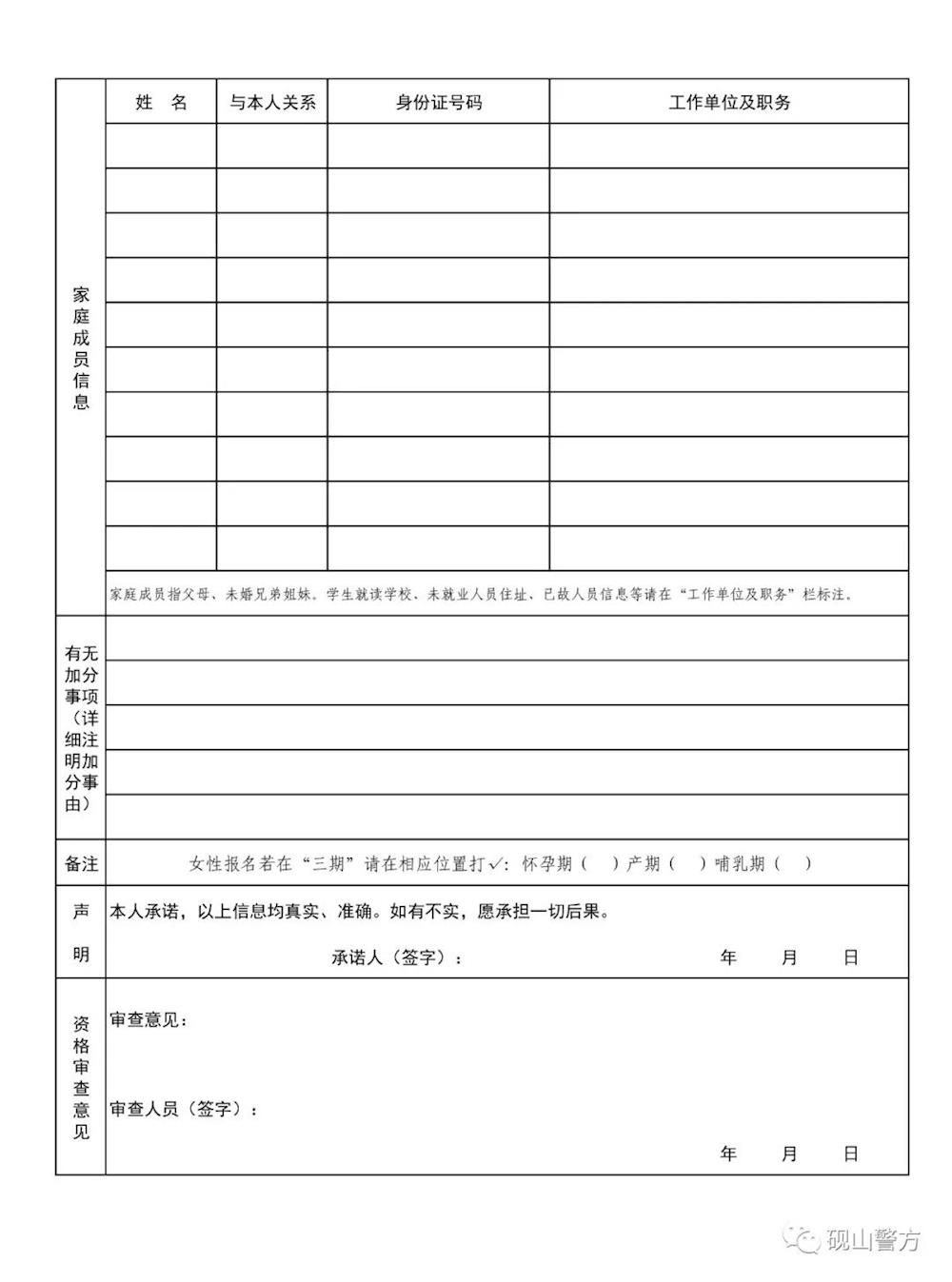 (4)《硯山縣公安局2020年輔警招聘報名表》、《硯山縣公安局2020年輔警招聘誠信承諾書》、《硯山縣公安局2020年輔警招聘政審表》;